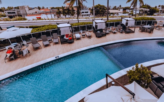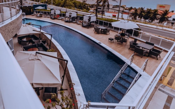 Com vista para o Morro do Careca, principal cartão postal de Natal/RN, nossa piscina conta com serviço de bar e restaurante, além de espreguiçadeiras que você vai amar.